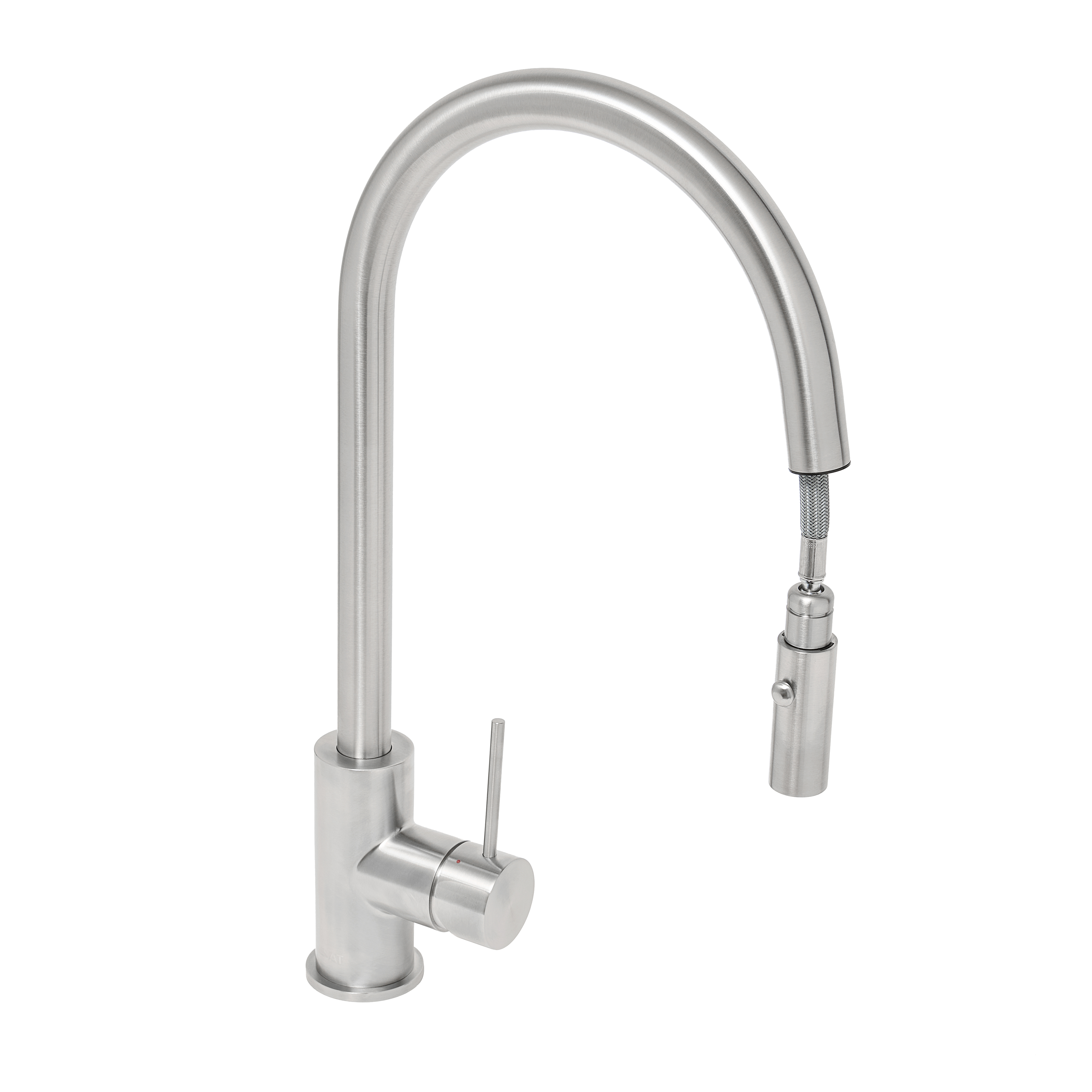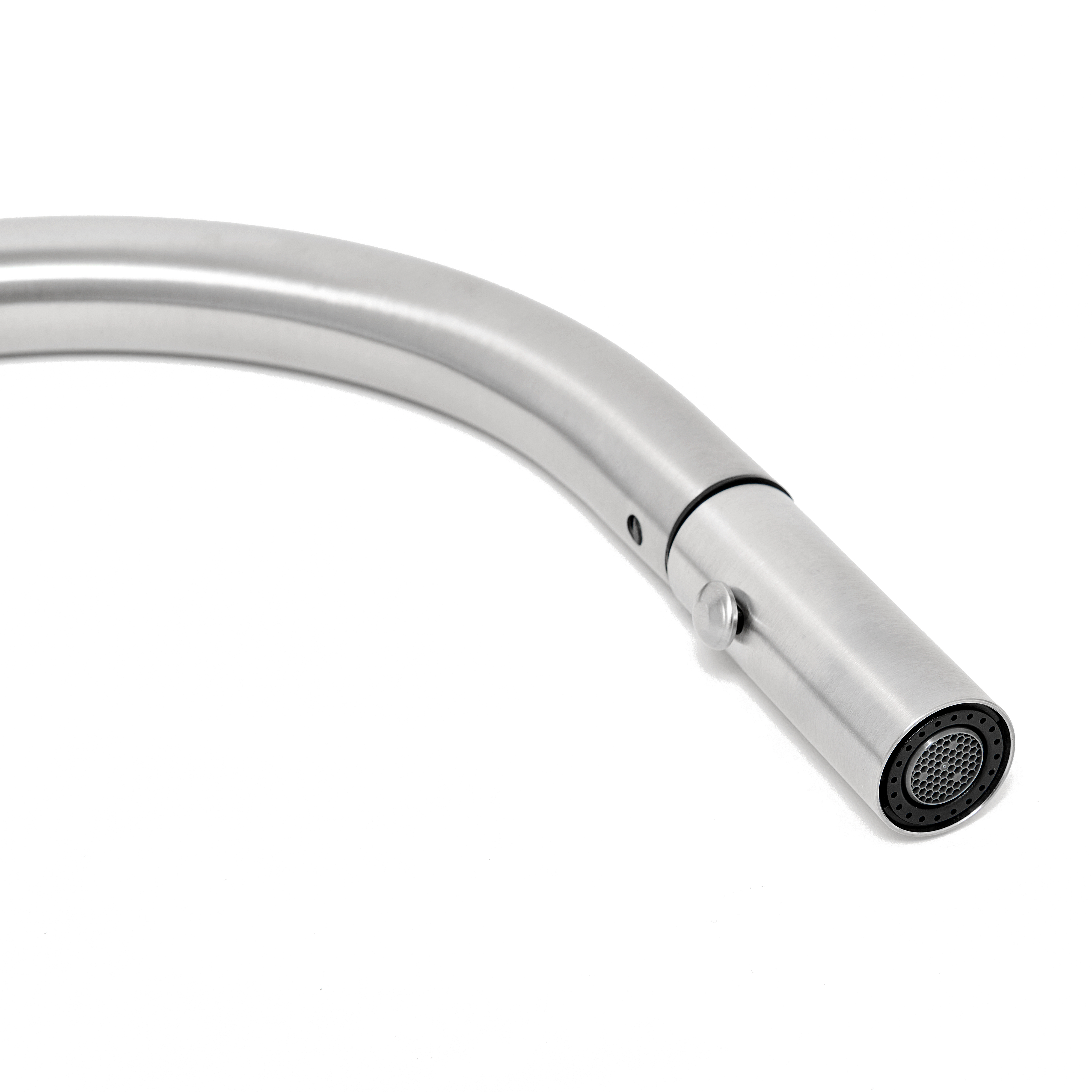 Caractéristiques du mitigeur évier à levier sur pied 44 cm avec douchette extractible 2 jets, Swiss Aqua Technologies (SAT) Aurum, inox (SATBAUR286NRZ) :