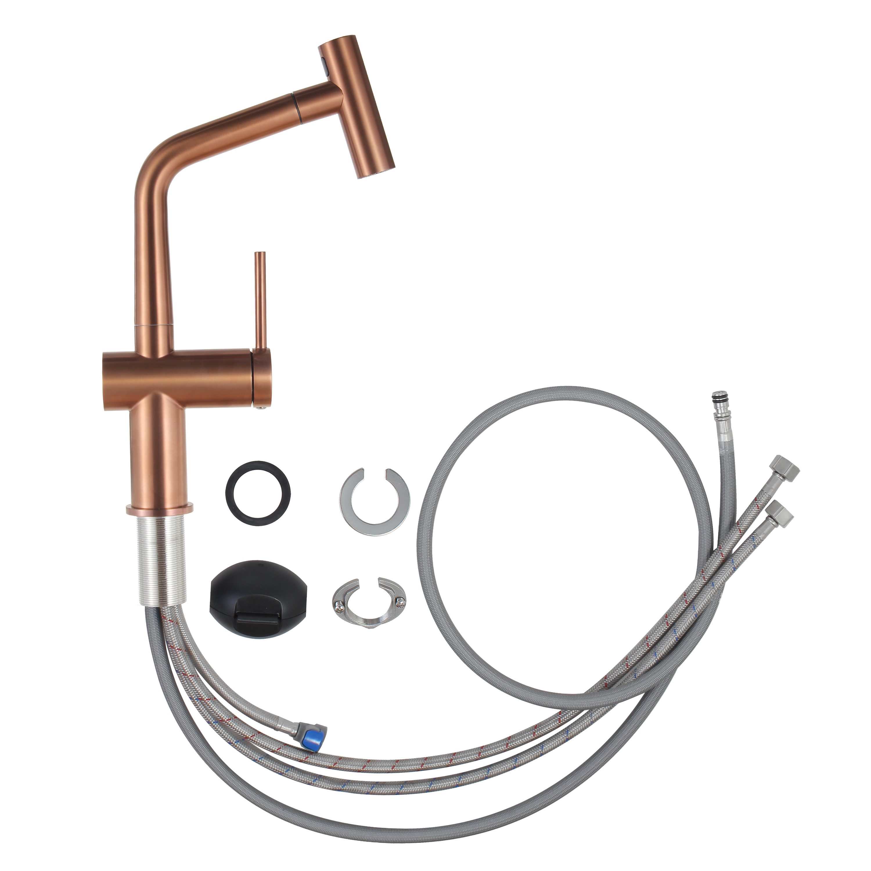 Caractéristiques du mitigeur d'évier à levier en acier inoxydable avec bec extractible, monotrou, Ceramia Timeless, cuivre brossé (TMLKF185BCP) :
