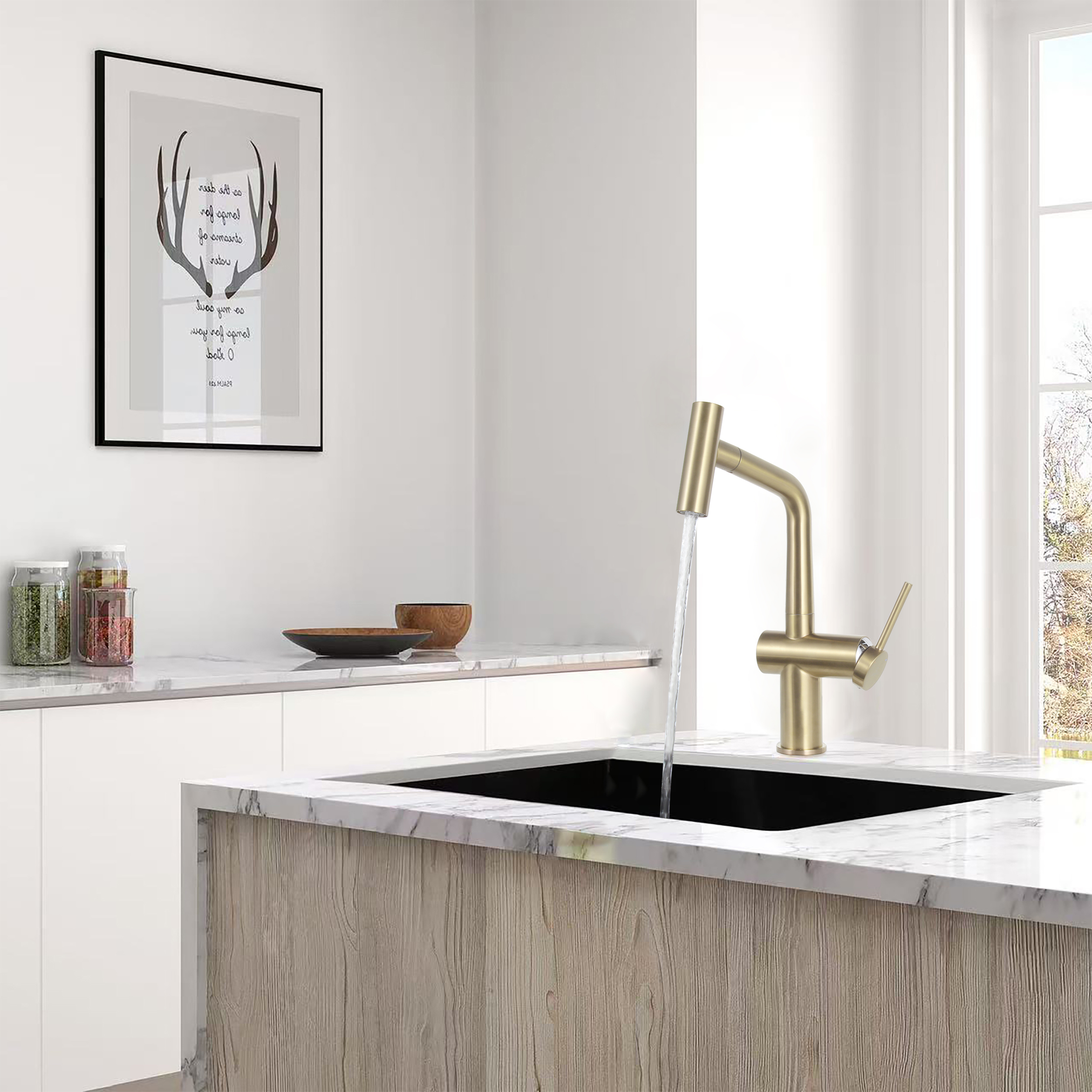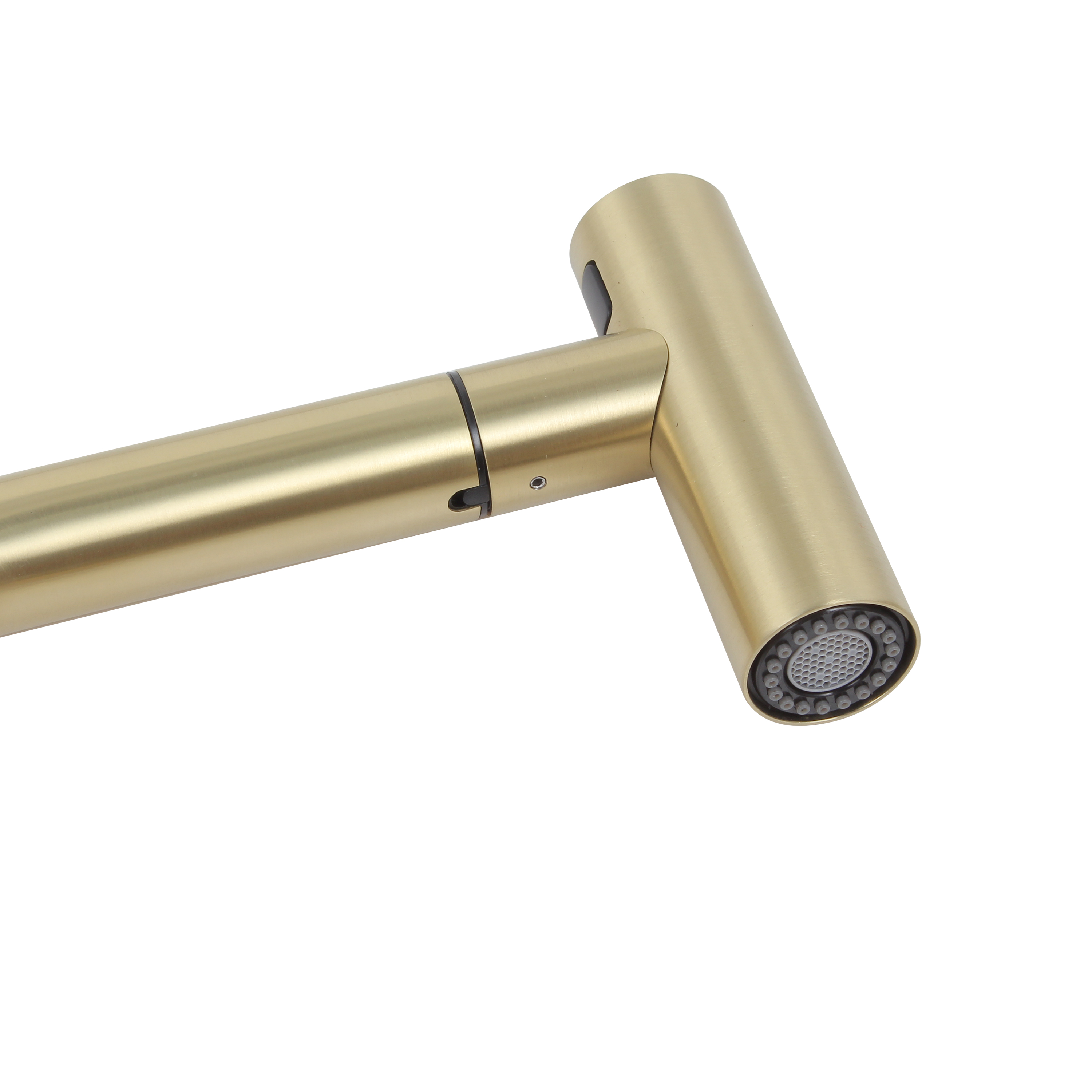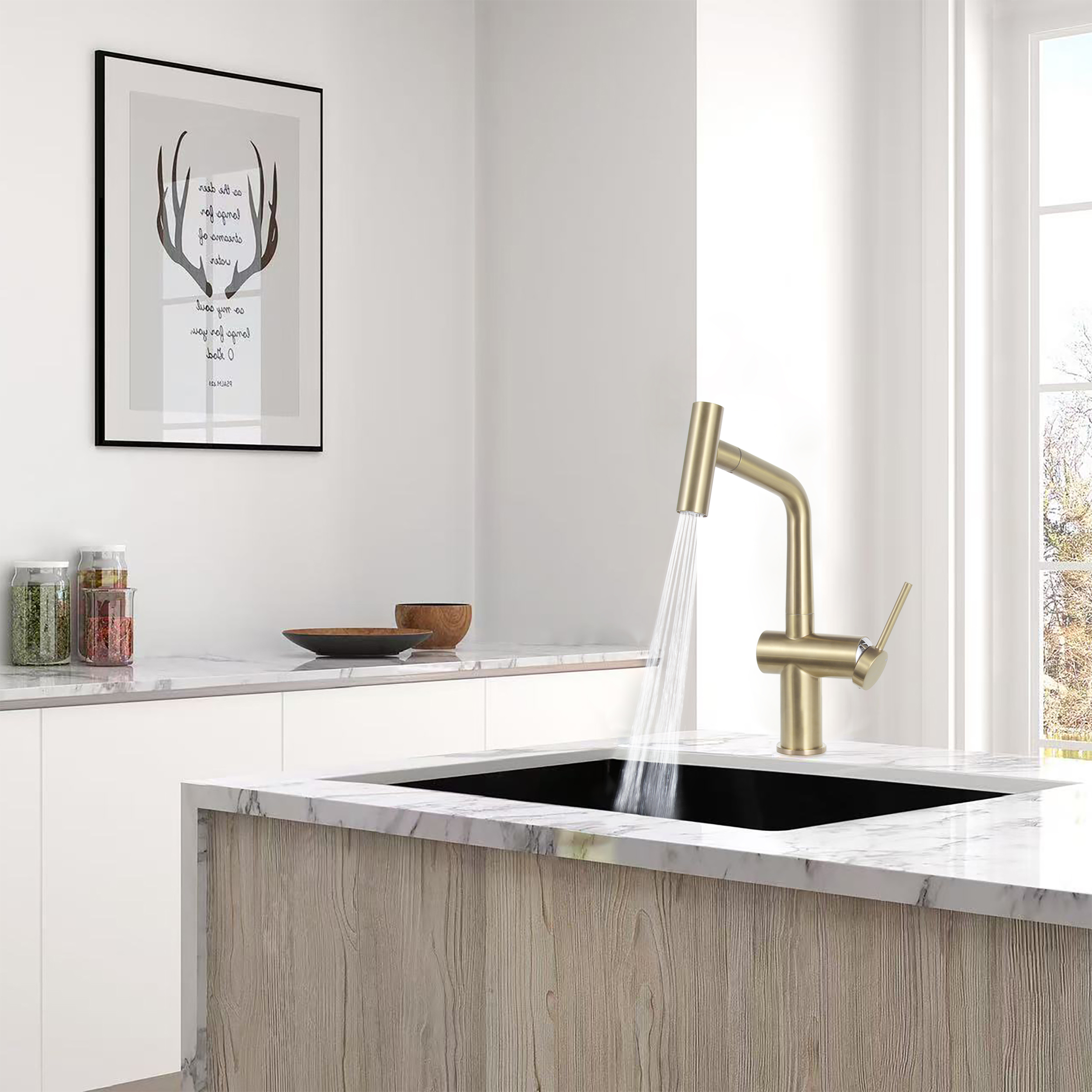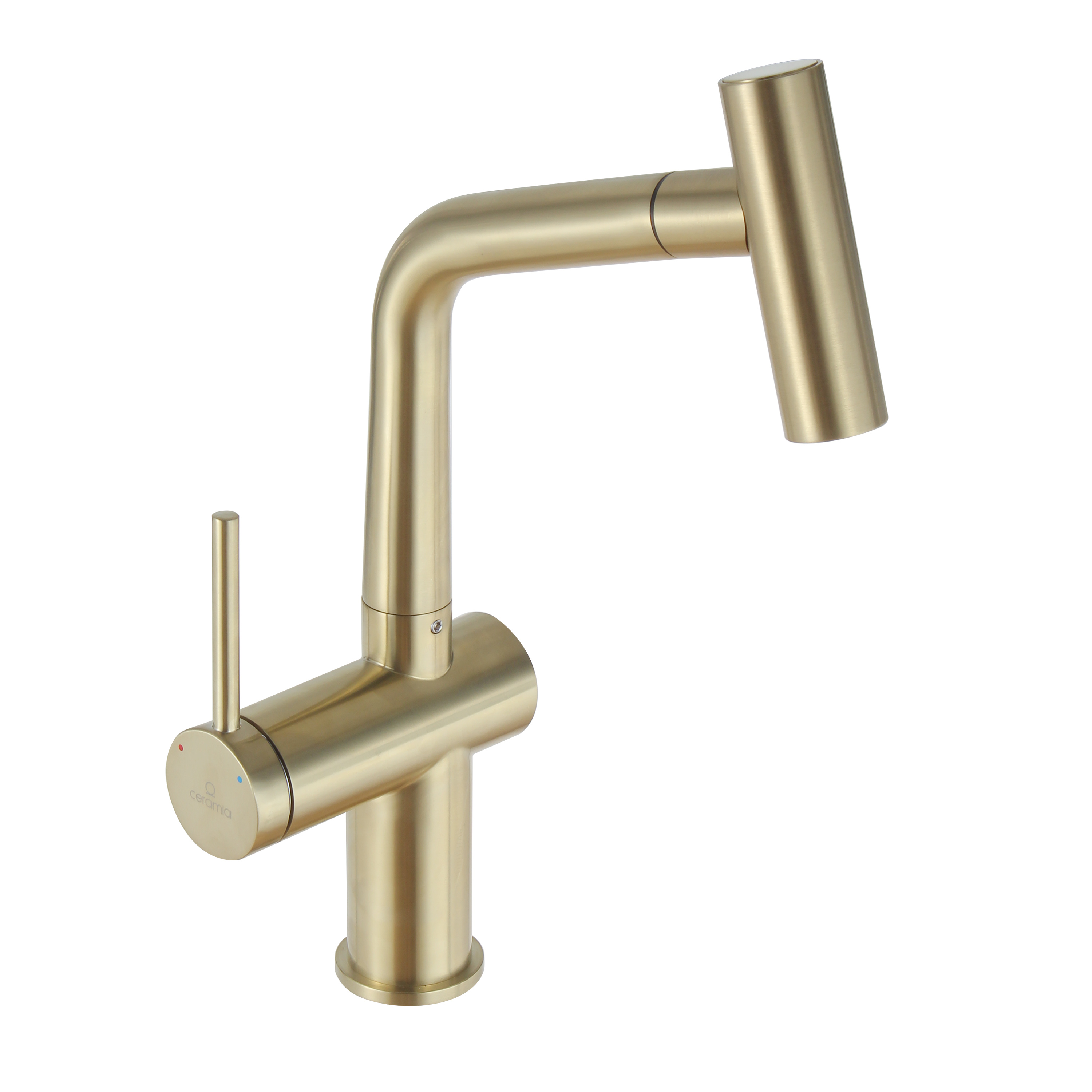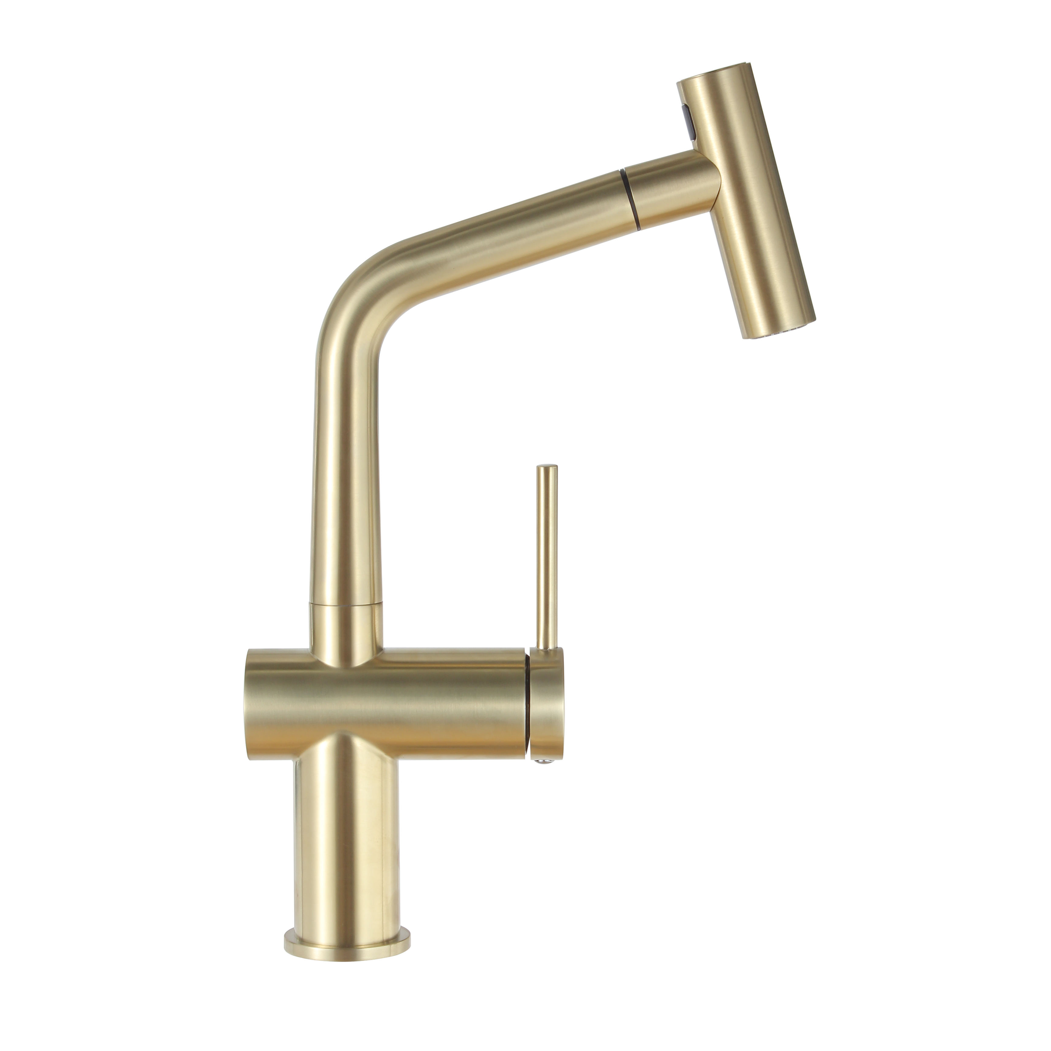 Ceramia Timeless mitigeur d'évier à levier en acier inoxydable avec douchette extractible, monotrou, or brossé (TMLKF185BG)