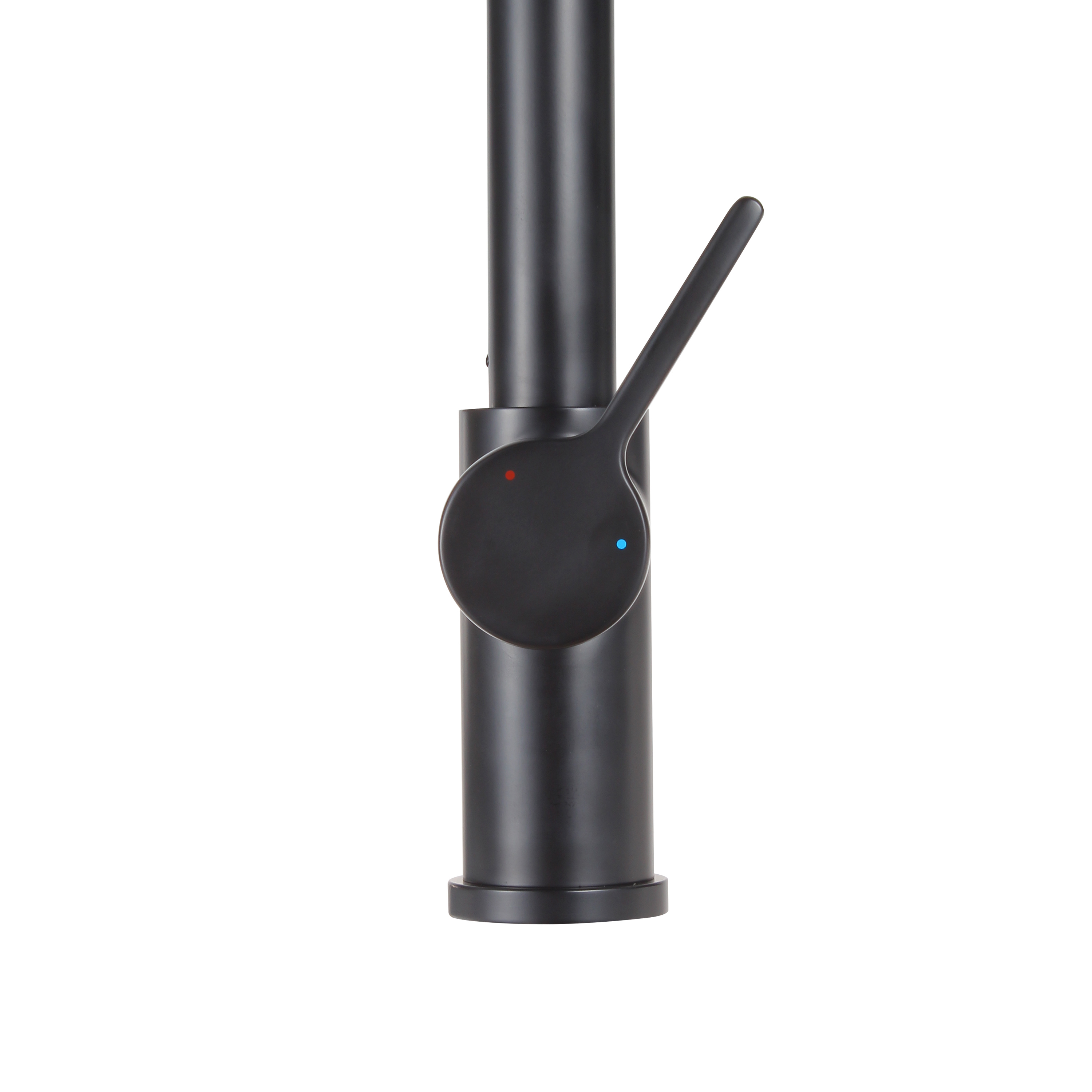 Caractéristiques du mitigeur d'évier à levier en acier inoxydable avec bec extractible, monotrou, Ceramia Timeless, noir mat (TMLKF285BM) :