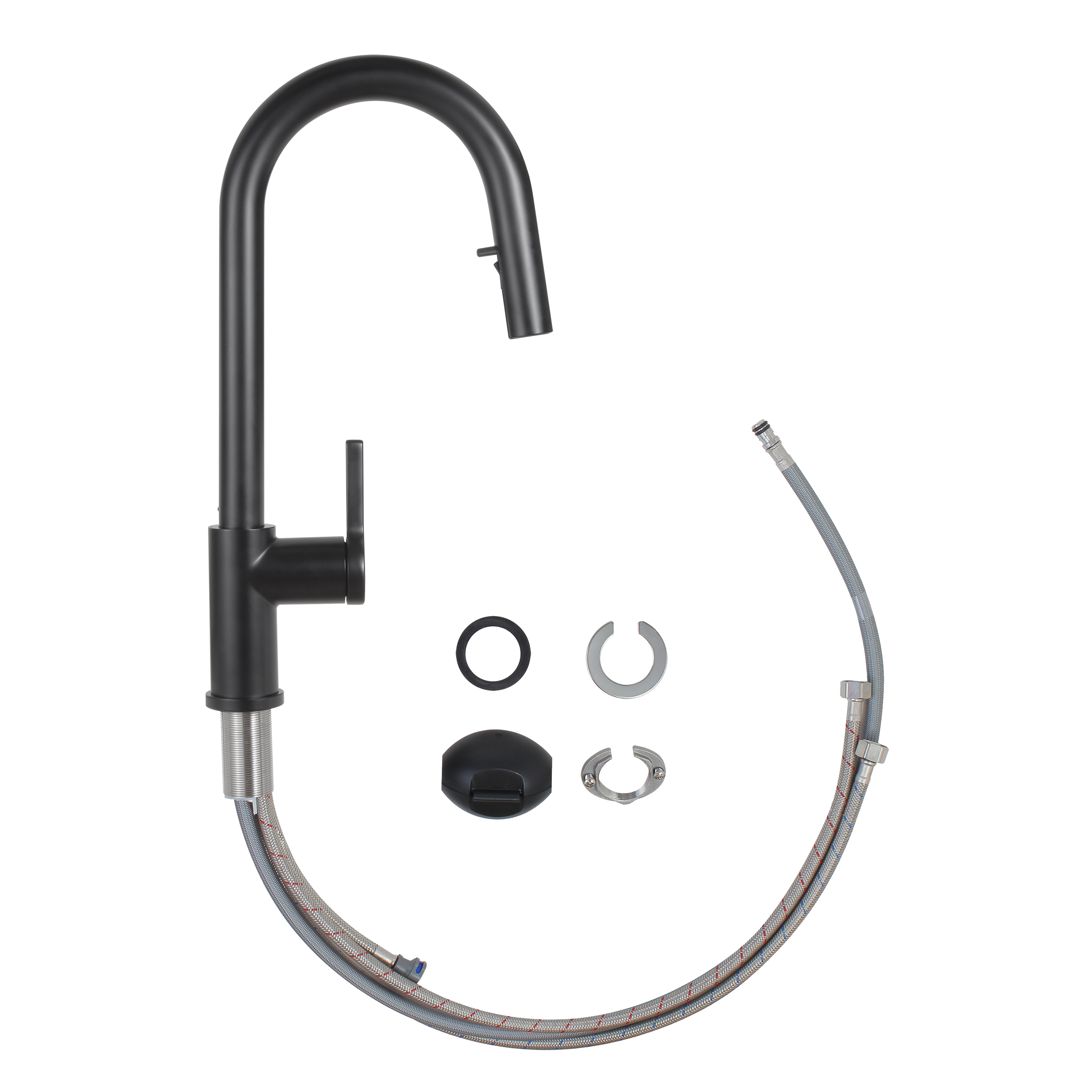 Ceramia Timeless mitigeur d'évier à levier en acier inoxydable avec douchette extractible, monotrou, noir mat (TMLKF285BM)