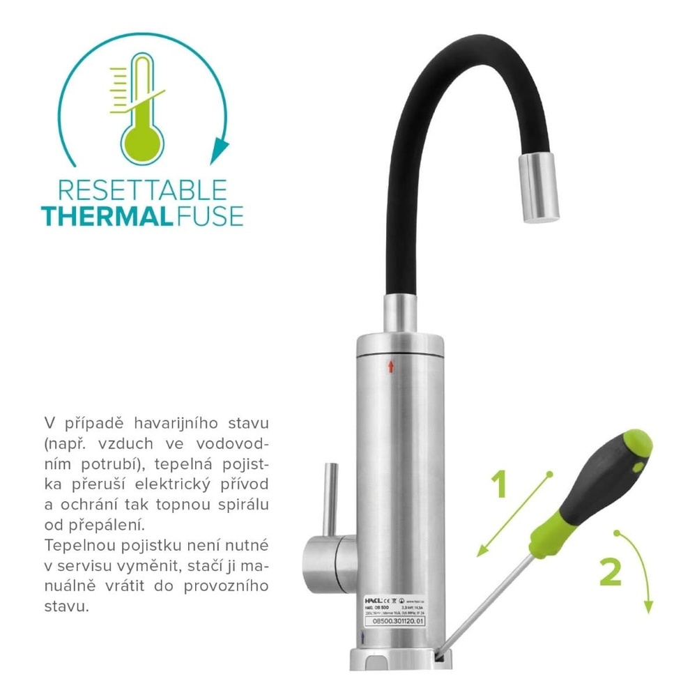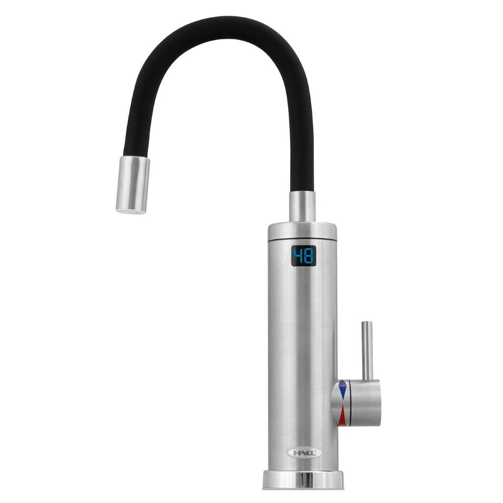Caractéristiques du mitigeur d'évier sur pied avec chauffe-eau électrique, Hakl, acier inoxydable (OB500) :