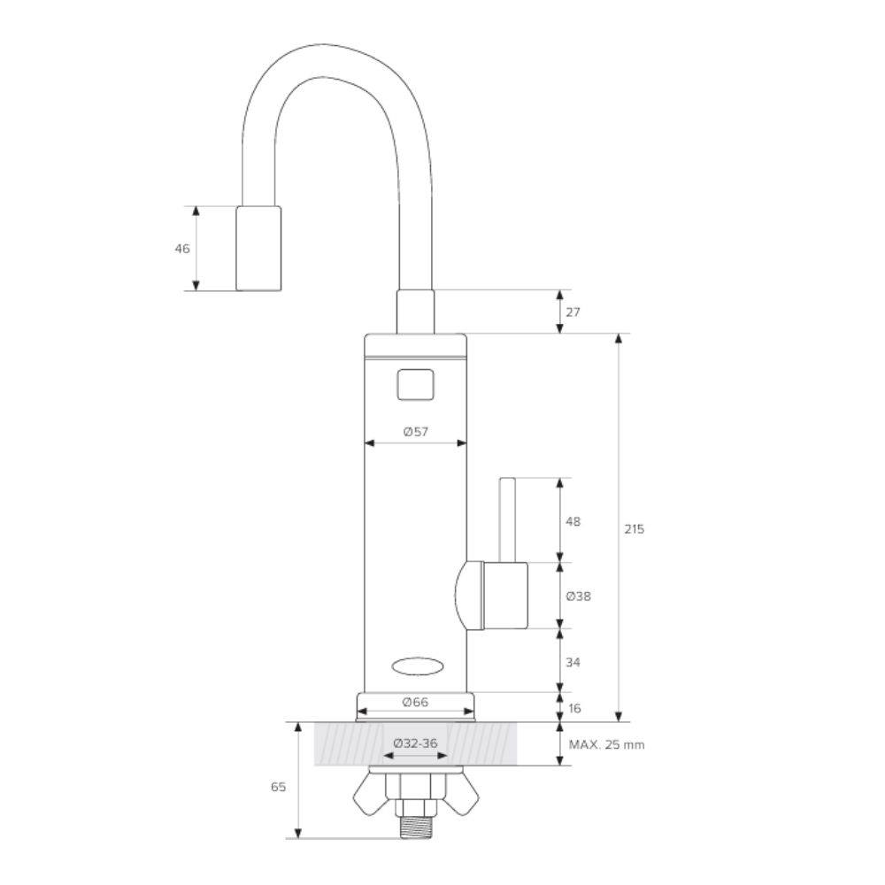 Novaservis Mitigeur d'évier sur pied avec chauffe-eau électrique, acier inoxydable (OB500)