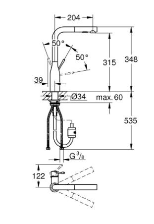 - Type de mitigeur:bec en "L"