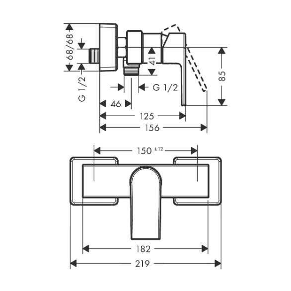 Caractéristiques du Mitigeur douche avec cartouche à 2 vitesses, Chrome, Hansgrohe Vernis Shape (71656000) :