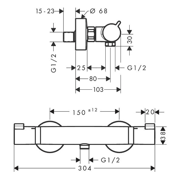 Ses poignées tournantes permettent de régler le débit et la température en toute sécurité, même avec les mains savonneuses. Le mitigeur thermostatique maintient l'eau à la température souhaitée et empêche qu’elle ne soit trop chaude ou trop froide. Un bouton sur la poignée ne libère de l’eau à une température supérieure à 40° qu’à la demande et empêche tout dérèglement de la température de l’eau (SafetyStop).