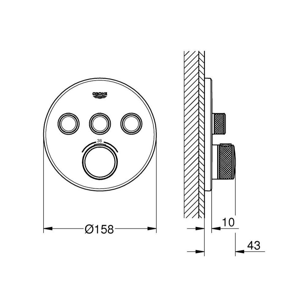 Caractéristiques de la façade avec mitigeur thermostatique encastré 3 sorties, Grohe Grohtherm SmartControl, or (G29121GL0) :