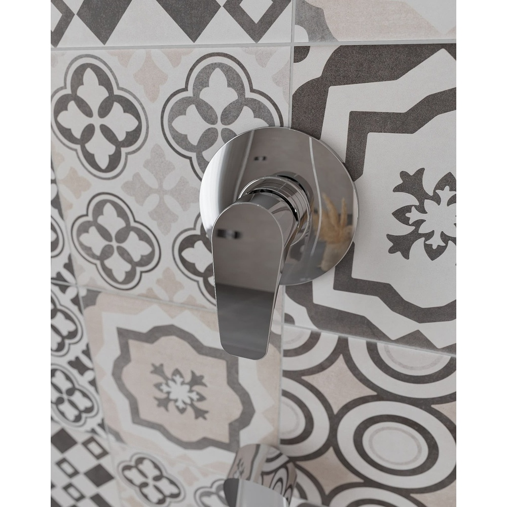 Mitigeur de douche à levier encastré avec corps caché. En finition chromée.