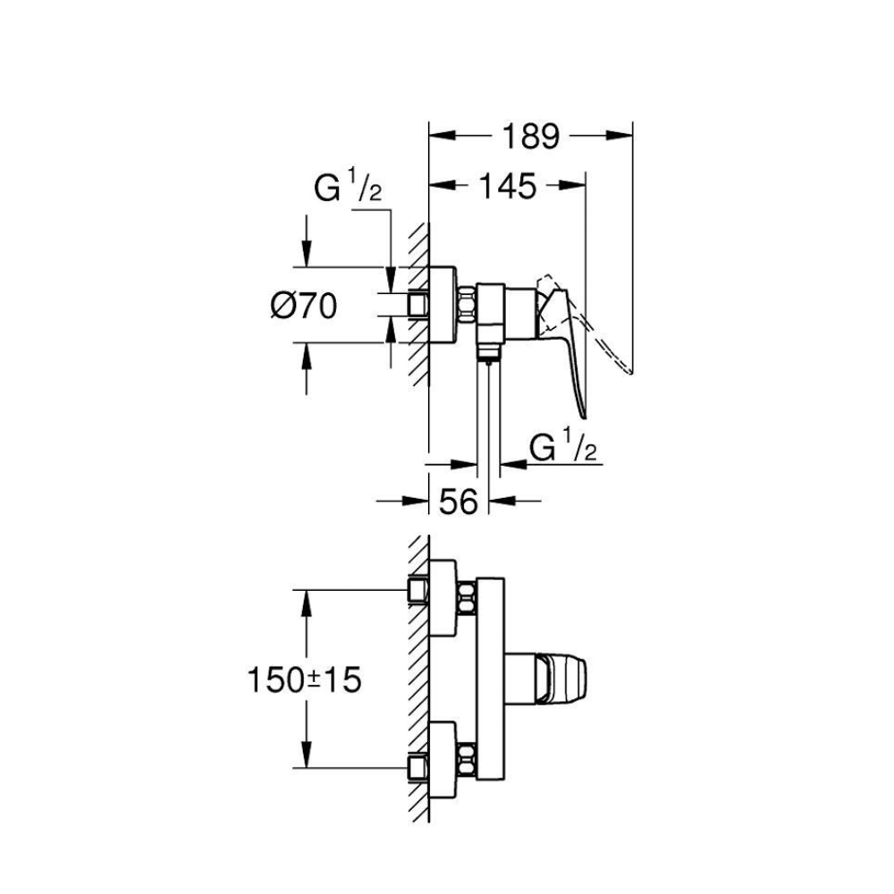 Caractéristiques du mitigeur monocommande de douche mural 150 mm à levier, sans ensemble de douche, Grohe Dice, noir mat (1018742430) :