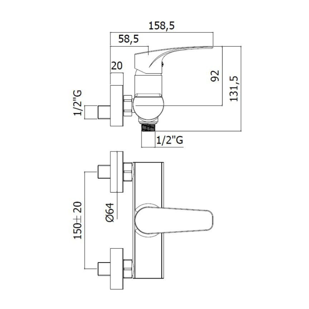 Caractéristiques du mitigeur de douche mural à levier 150 mm, sans set de douche, Swiss Aqua Technologies Project, noir mat (SATBSPRO268C) :
