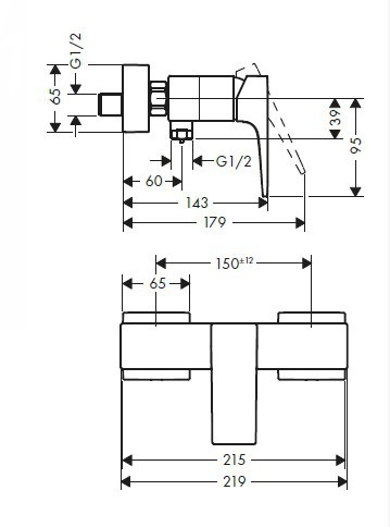 - entraxe: 150 mm ± 12 mm