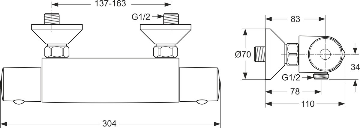 Ideal Standard Mitigeur thermostatique douche CeraTherm 50 (A6367AA)