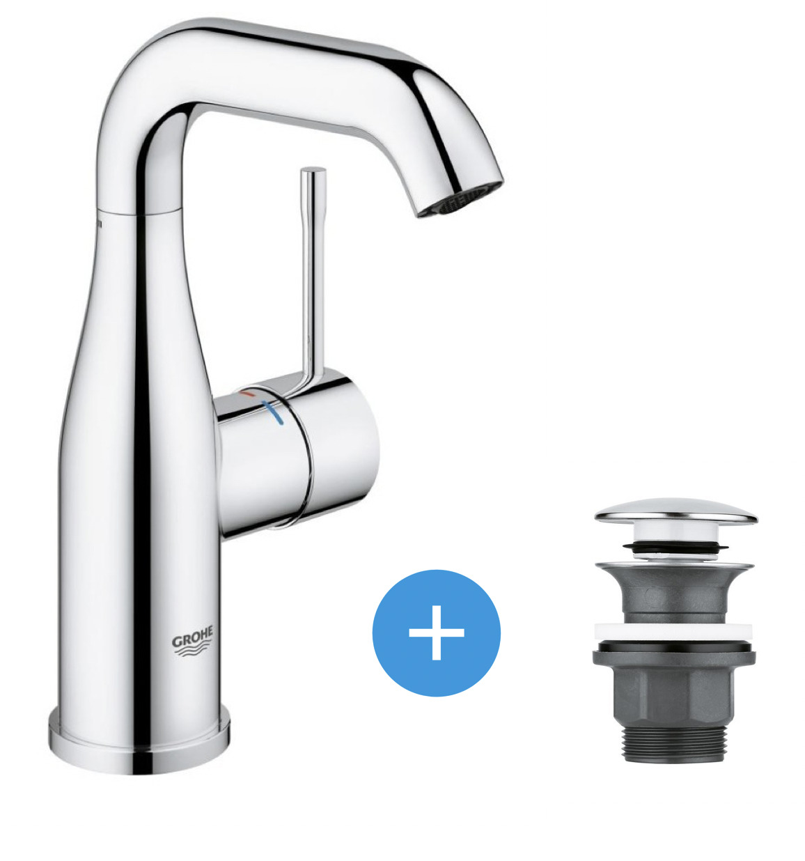 Grohe Essence Set Mitigeur monocommande 1/2" Lavabo Taille M + Bonde clic clac Grohe pour lavabo avec trop-plein (23463001-CLICCLAC)