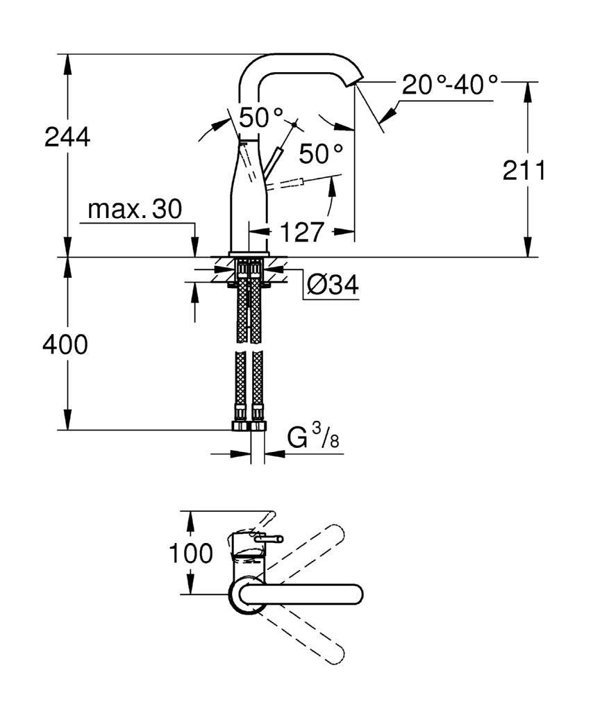 Caractéristiques du Mitigeur monocommande pour lavabo Grohe Essence, 1/2" Taille L: