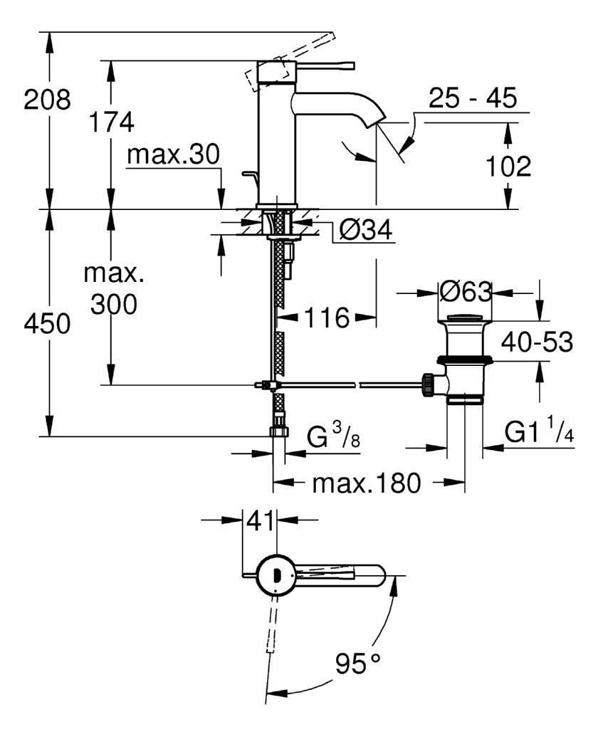 Caractéristiques du mitigeur monocommande 1/2" lavabo Taille S Grohe Essence :