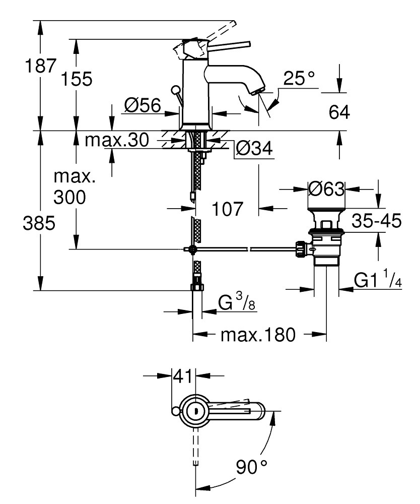 Caractéristiques du mitigeur monocommande lavabo taille S, Grohe Start Classic (LM-23782000) :