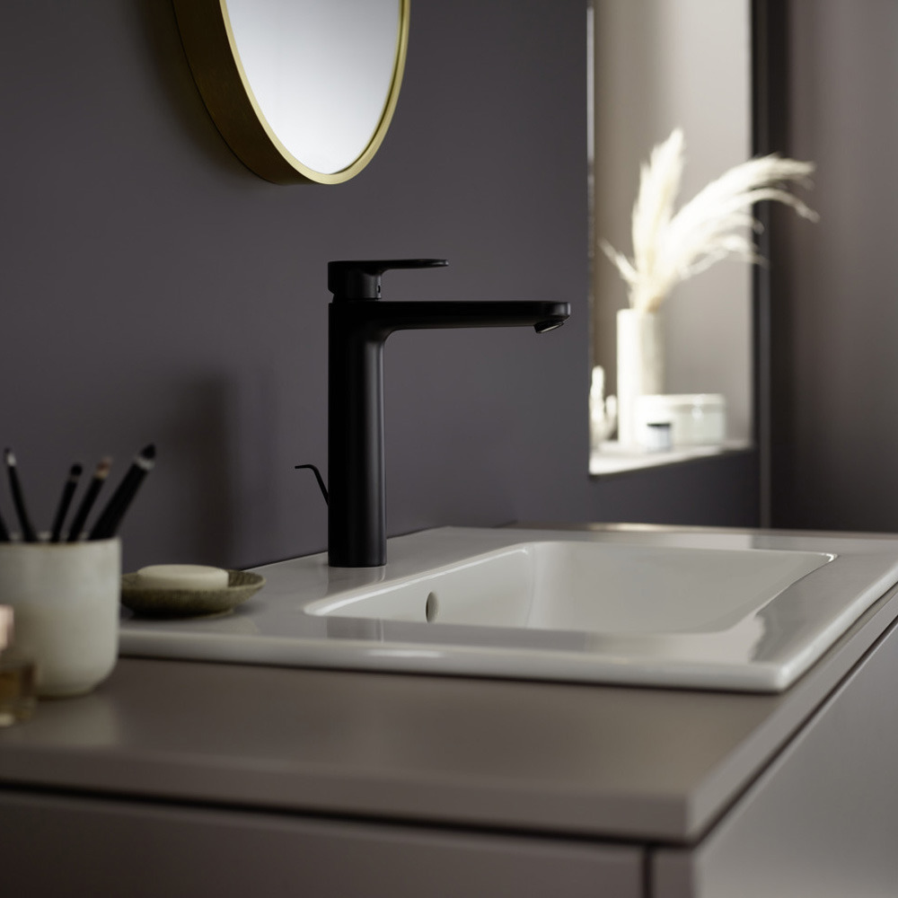 Caractéristiques du Mitigeur de lavabo 190 avec tirette et vidage synthétique, Noir mat, Vernis Blend Hansgrohe (71552670) :