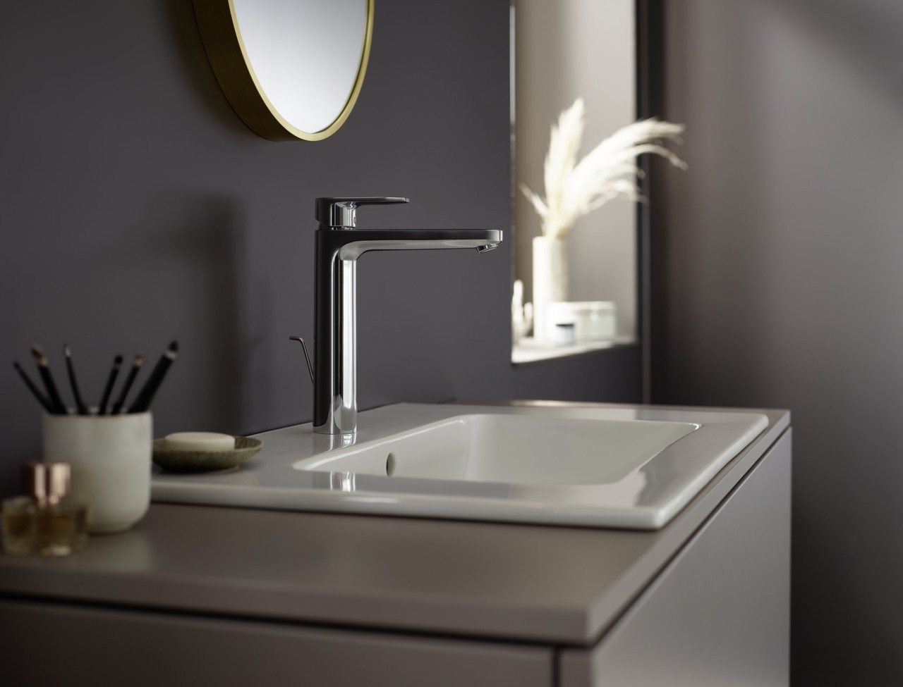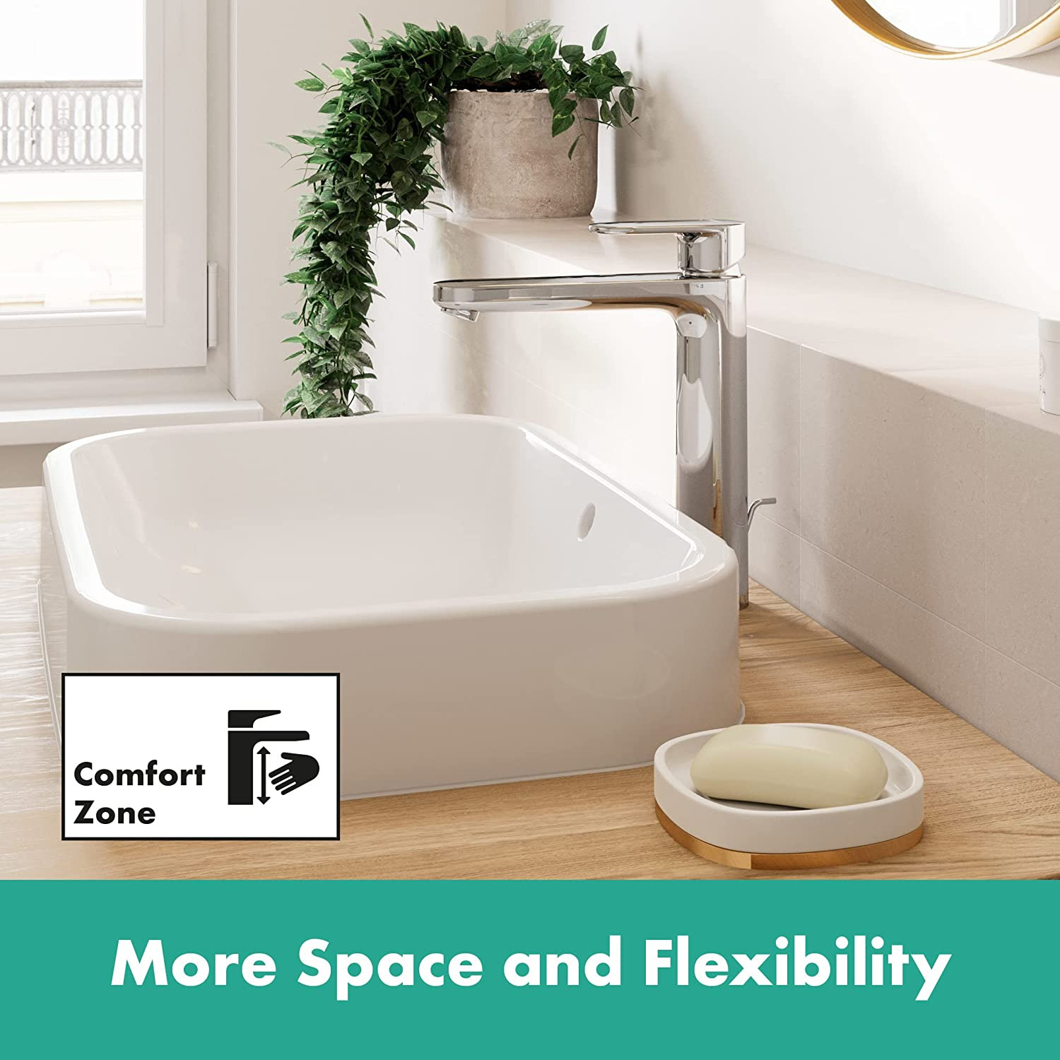 Caractéristiques du Mitigeur de lavabo 190 avec tirette et vidage synthétique, Chrome, Hansgrohe Vernis Blend (71552000) :