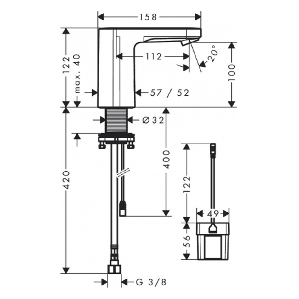 Caractéristiques du Mitigeur de lavabo électronique avec pré-réglage de la température ou en eau froide sur batterie, Hansgrohe Vernis Blend (71503000) :