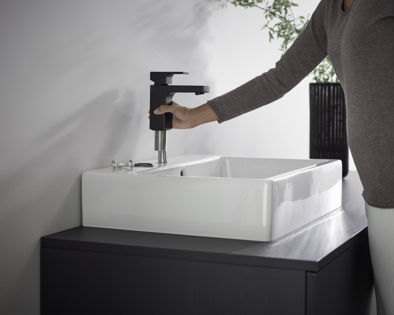 Hansgrohe Vernis Shape Mitigeur de lavabo 100, sans tirette ni vidage, Noir mat (71569670)
