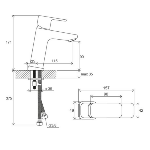 Caractéristiques du Mitigeur de lavabo 170 mm avec mousseur flexible, Chrome, Ravak 10° (X070129) :