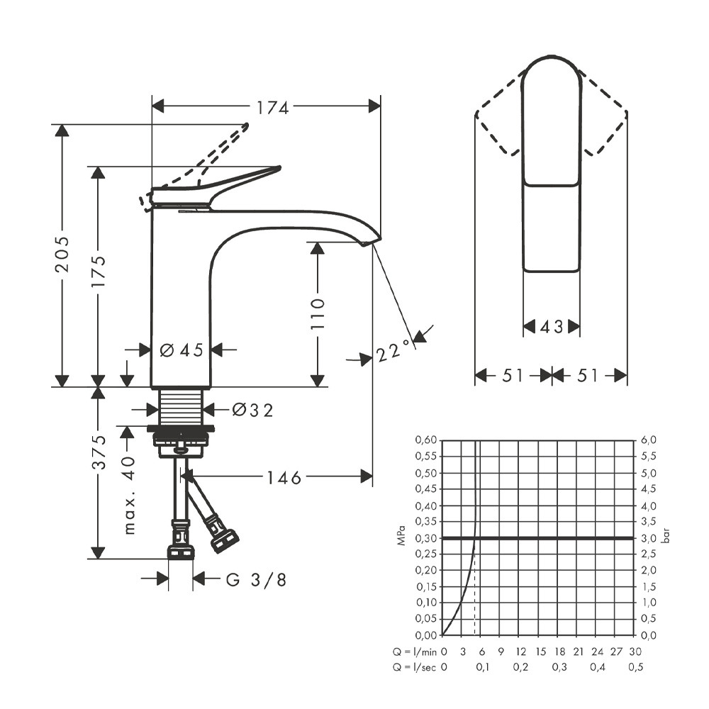 Hansgrohe Vivenis Mitigeur de lavabo 110 sans tirette ni vidage, chromé (75022000)