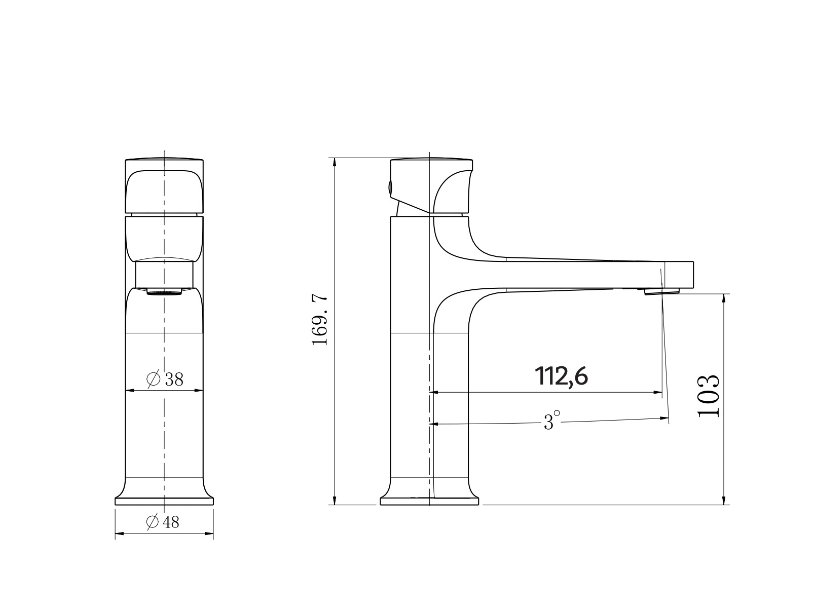 - Hauteur de robinet: 16,9 cm