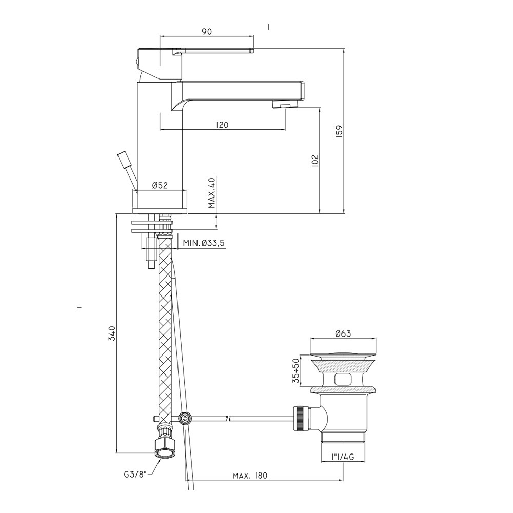Caractéristiques duVallone mitigeur lavabo avec tirette et vidage, noir mat (RIN075NO):