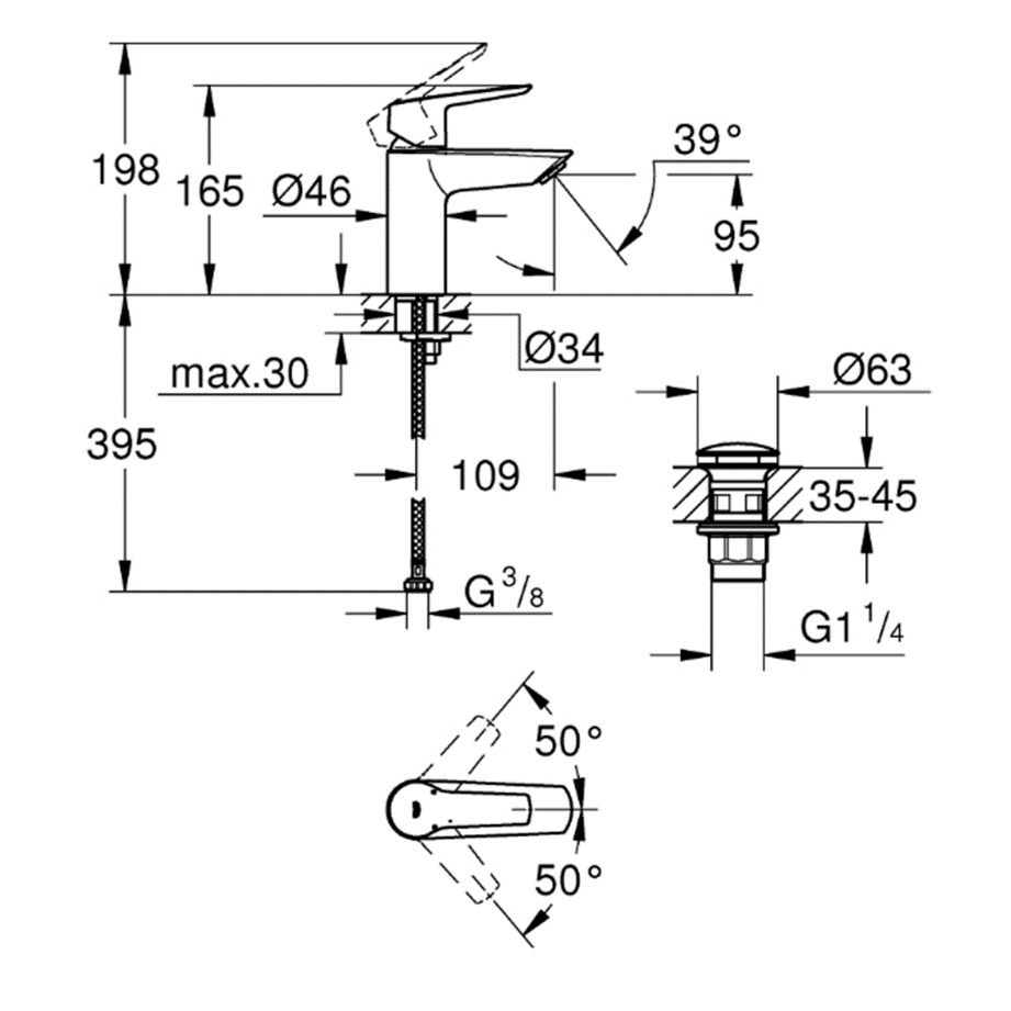 Caractéristiques du START Mitigeur Monocommande de lavabo, Taille S, avec vidage, Chrome (23550002):