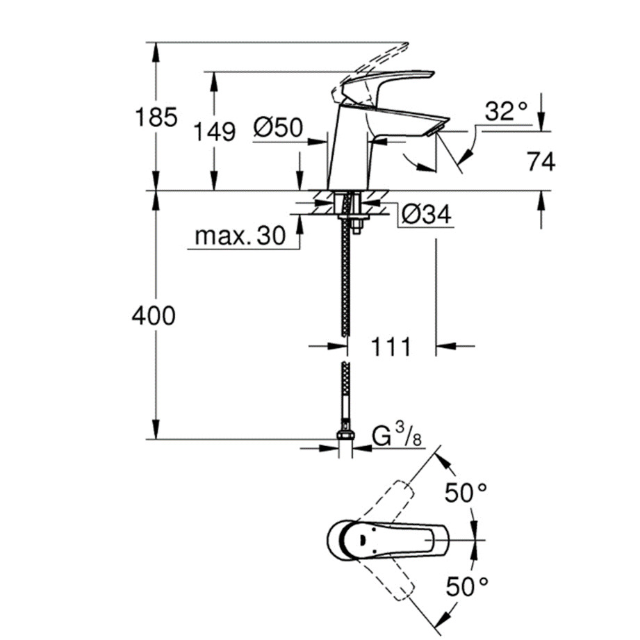 Grohe EUROSMART MITIGEUR MONOCOMMANDE LAVABO TAILLE S, CHROME (23967003)