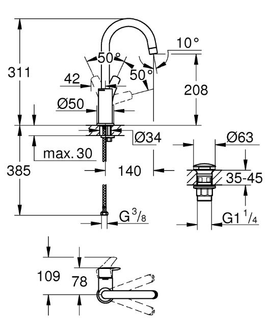 - Hauteur du bec:208mm