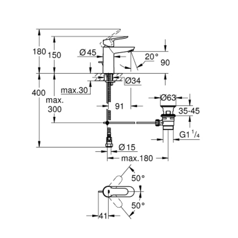 Grohe START Mitigeur Monocommande de lavabo "1/2, Avec vidage, Taille S, Chrome (23830000)