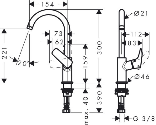 Hansgrohe Logis 210 Mitigeur lavabo bec haut sans tirette ni vidage, chromé (71131000)
