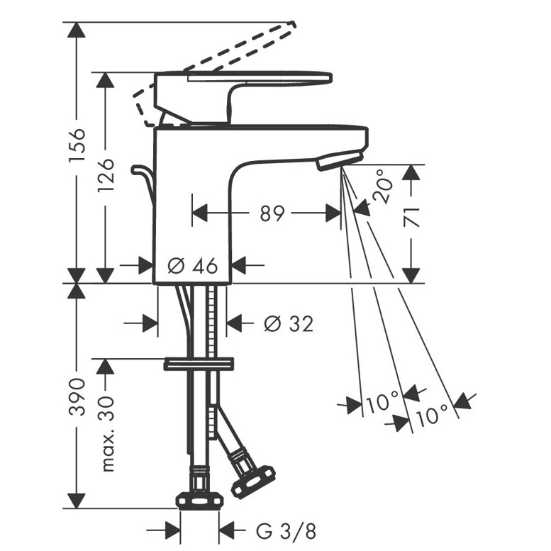 Caractéristique du mitigeur de lavabo 70 CoolStart avec tirette et vidage synthétique :