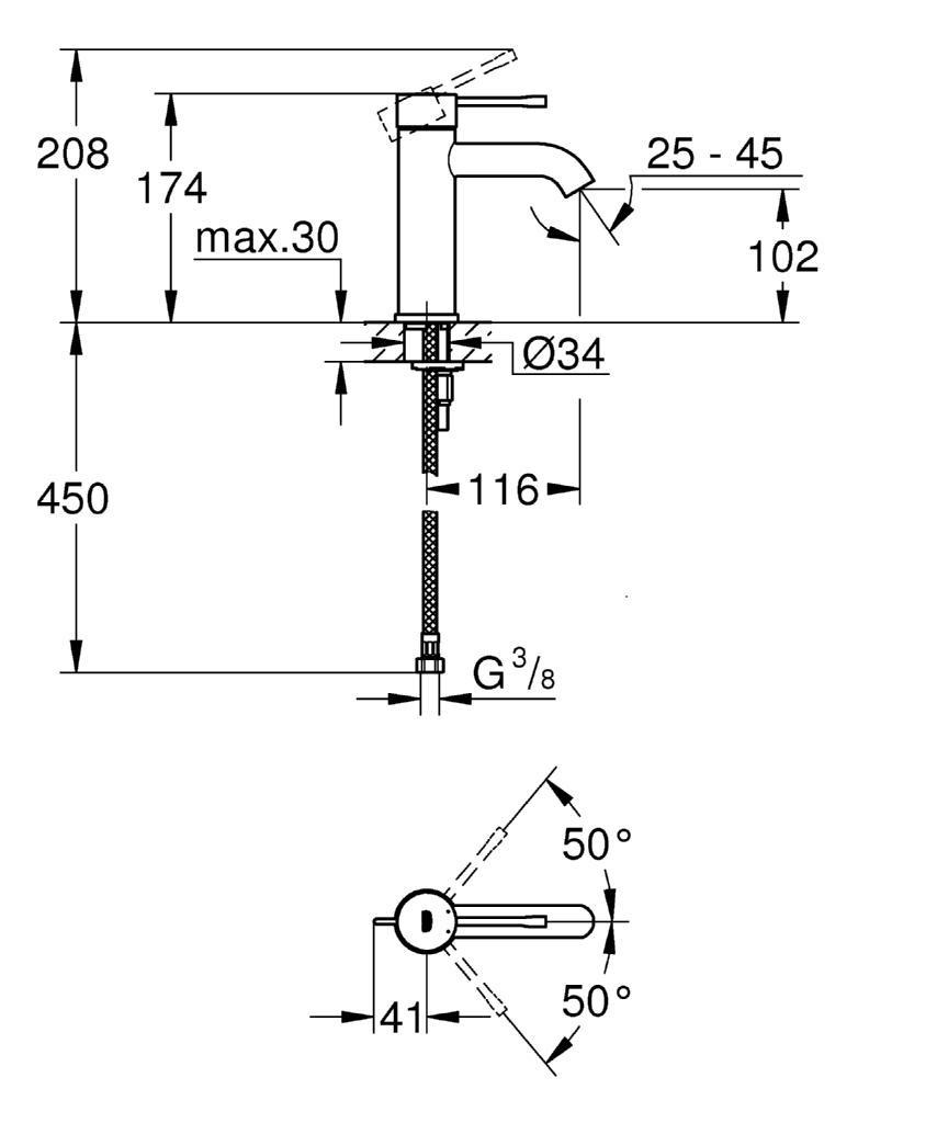 Caractéristiques du Mitigeur de lavabo, Chrome, Grohe Essence (23590001) :