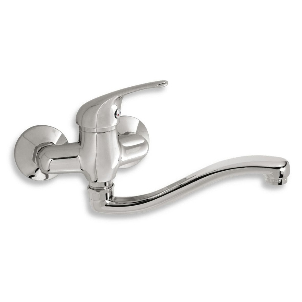 Robinet d'évier mural à levier avec bras tournant. Design rond. En finition chromée. Distance entre les robinets : 100 Mp.