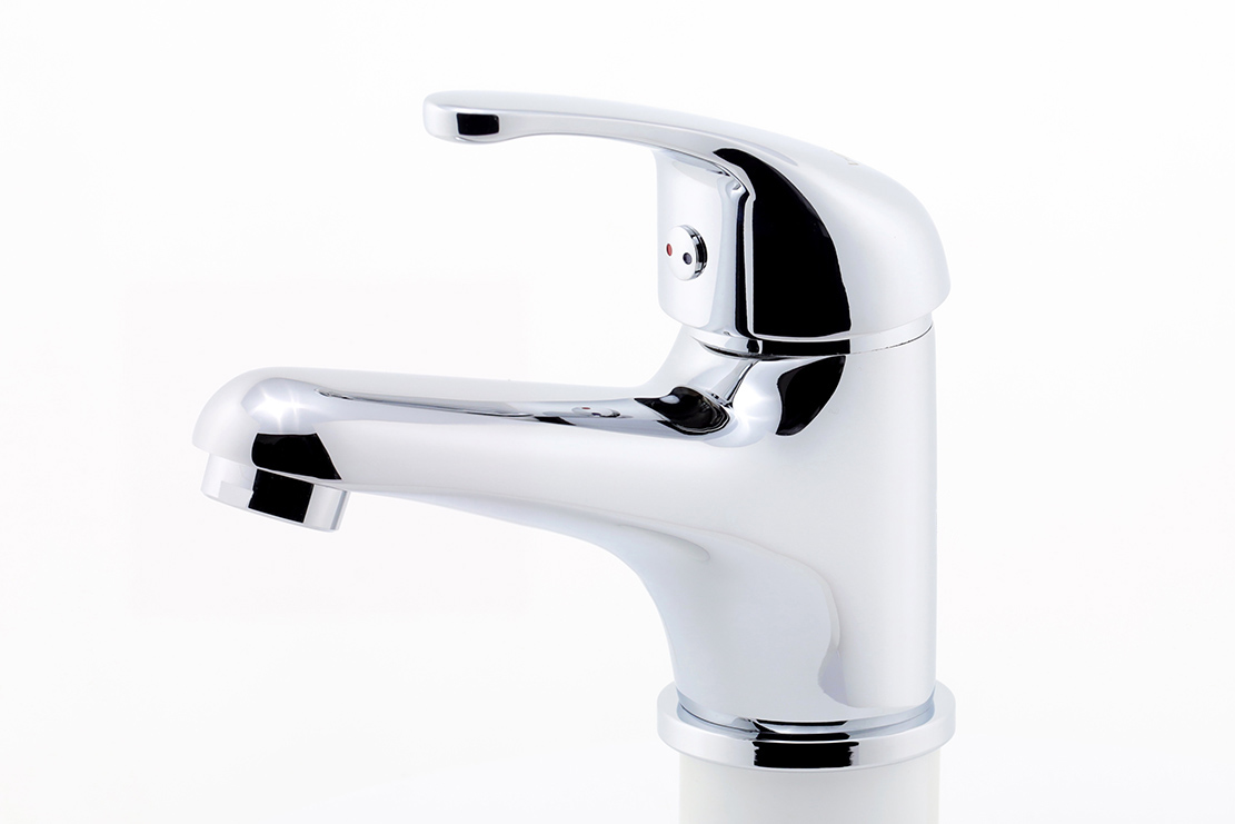Robinet de lavabo à levier sans Déchets. Design rond. En finition chromée.