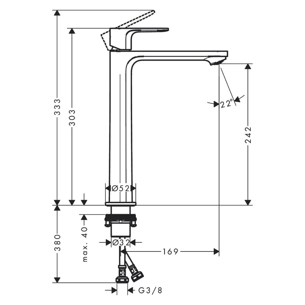 Hansgrohe Rebris E mitigeur lavabo haut sans bec chromé 72583000