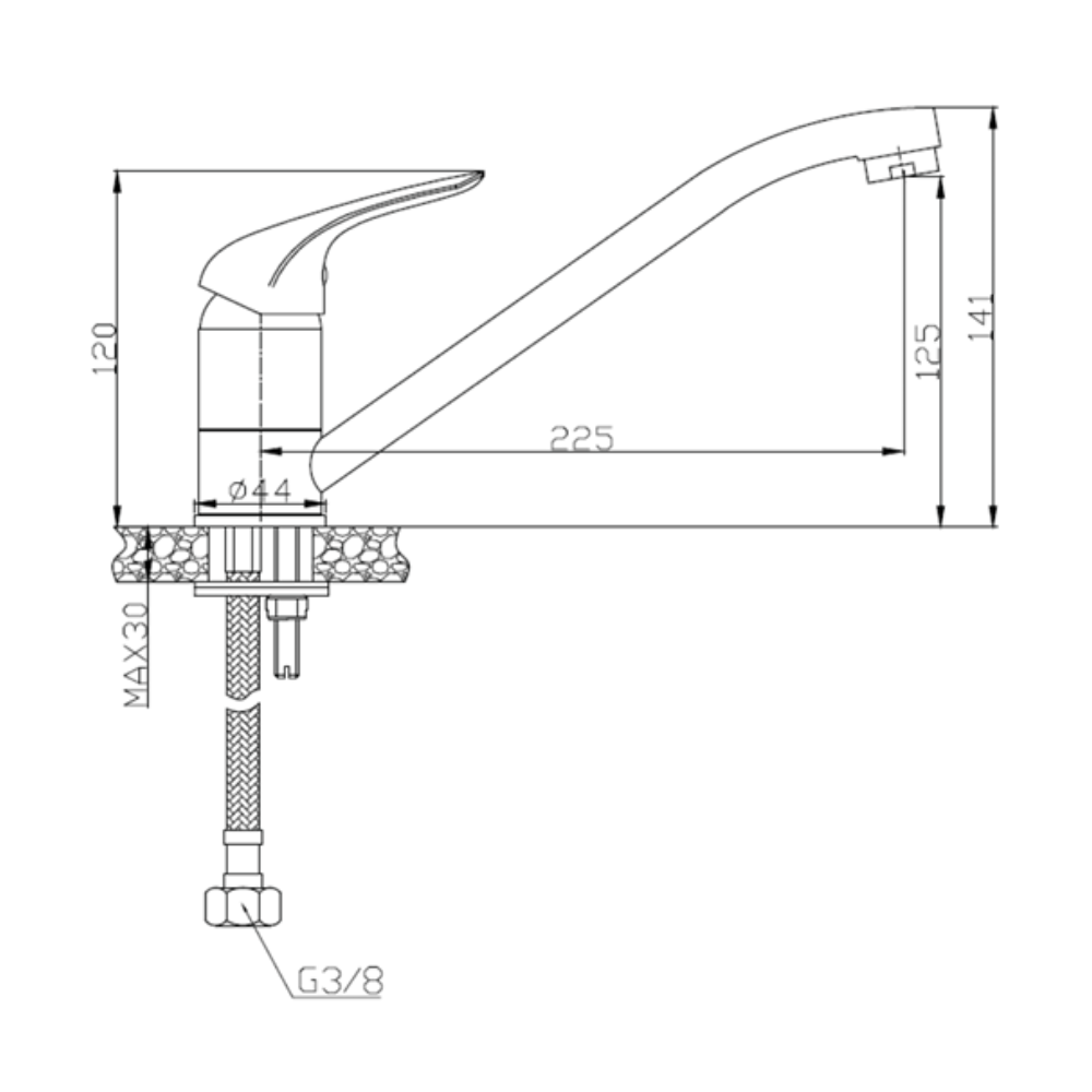 - Longueur du flexible : 40 cm, raccord G 3/8
