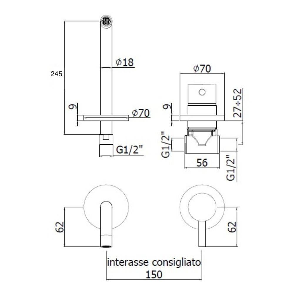 Mélangeur lavabo Paffoni Light incluant le mélangeur lavabo noir LIG007NO70