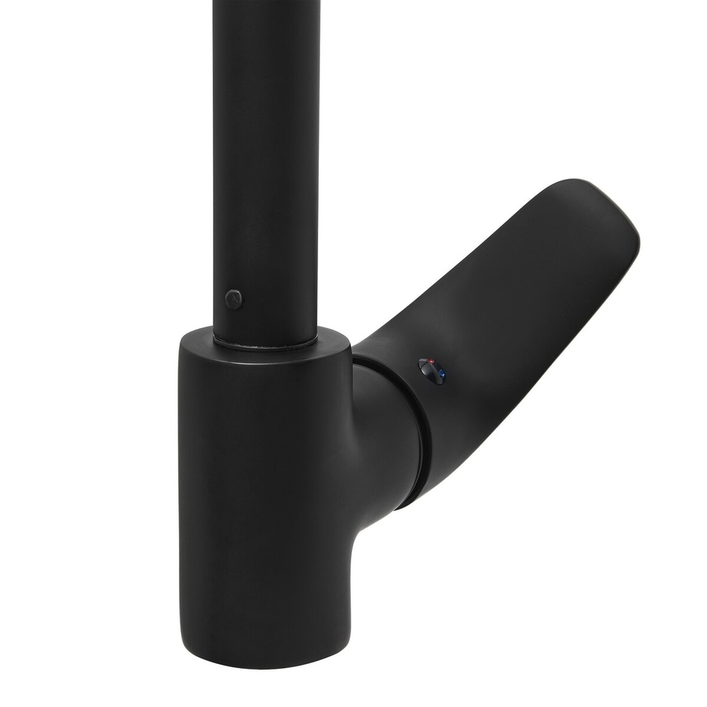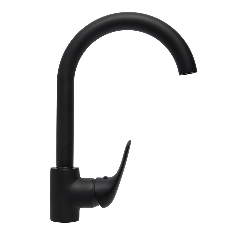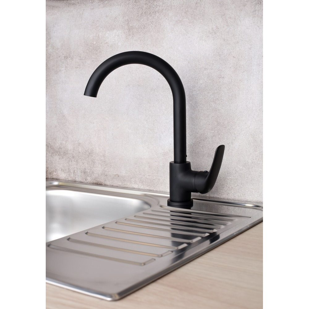 Robinet de cuisine à levier avec bec tournant. En Couleur Noir. La hauteur du mitigeur est de 28,75 cm. Le bras est à une hauteur de 20 cm. SAT en finition mate.
