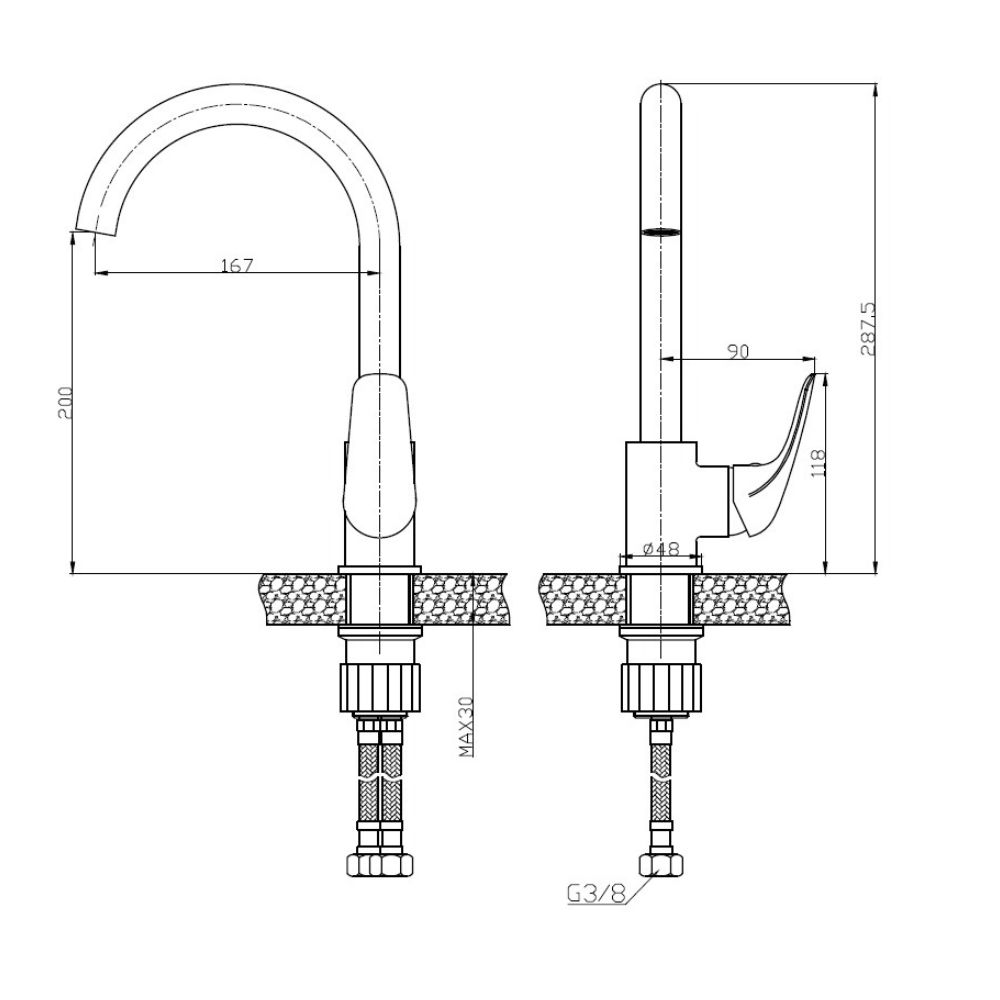 Le mitigeur peut être utilisé aussi bien pour l’évier que pour le lavabo, et il est équipé d’un aérateur en plastique.