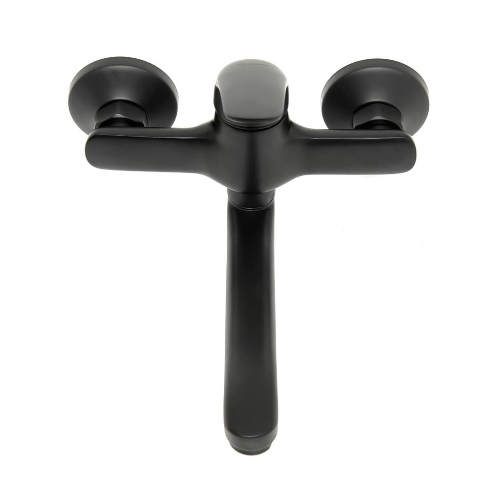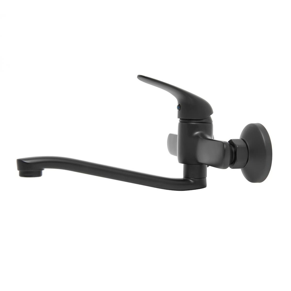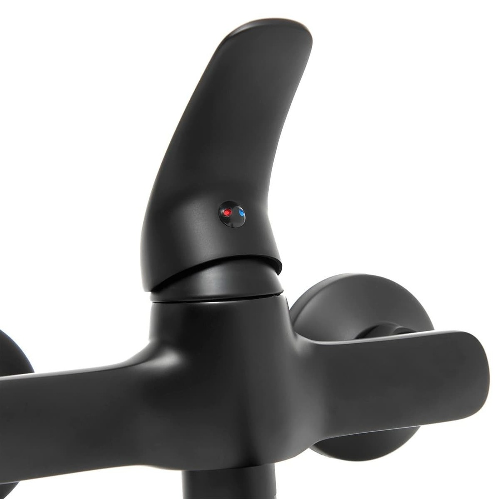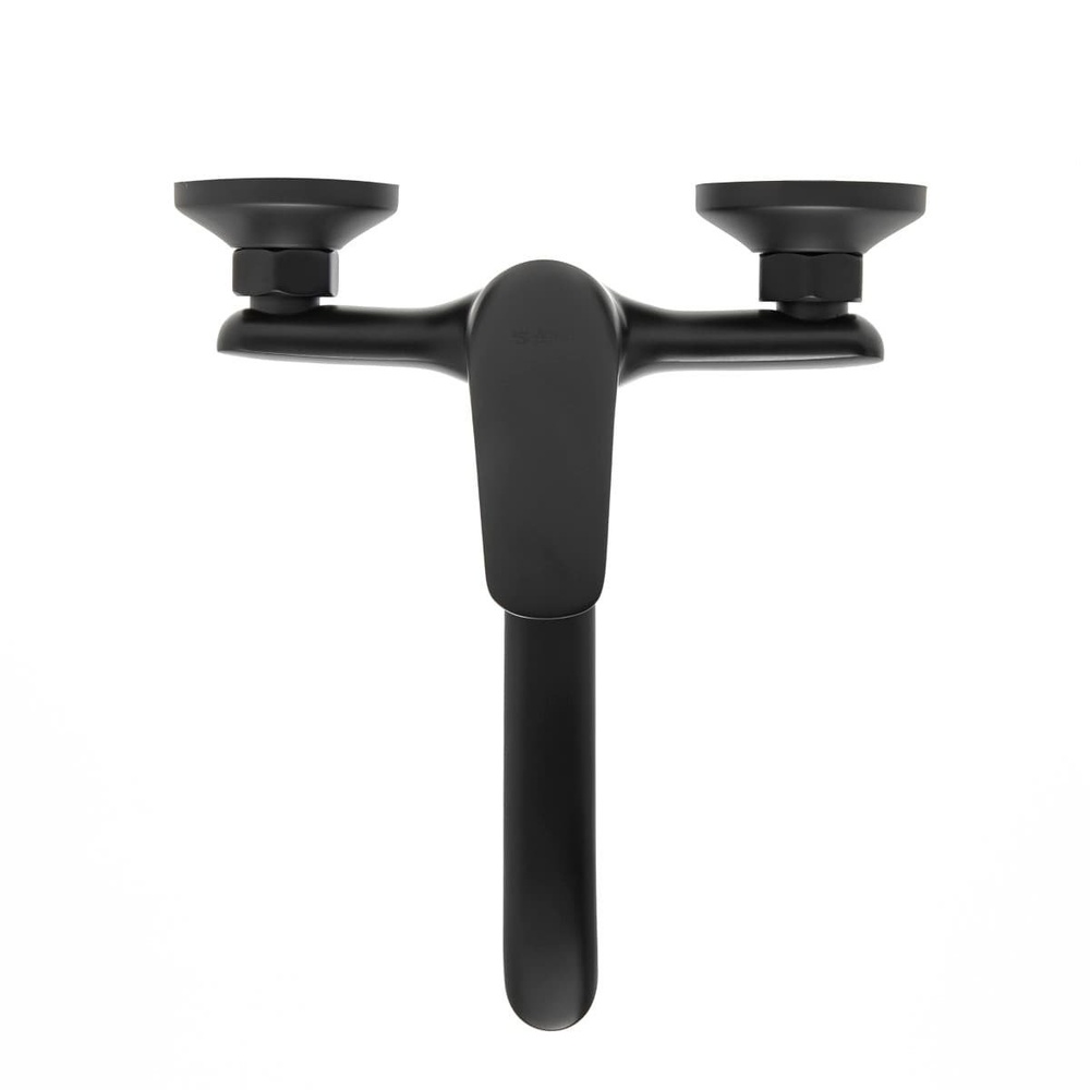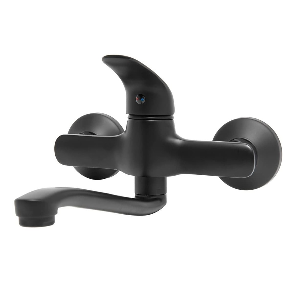 Robinet de lavabo mural à levier avec bras tournant en noir mat. Avec SAT.