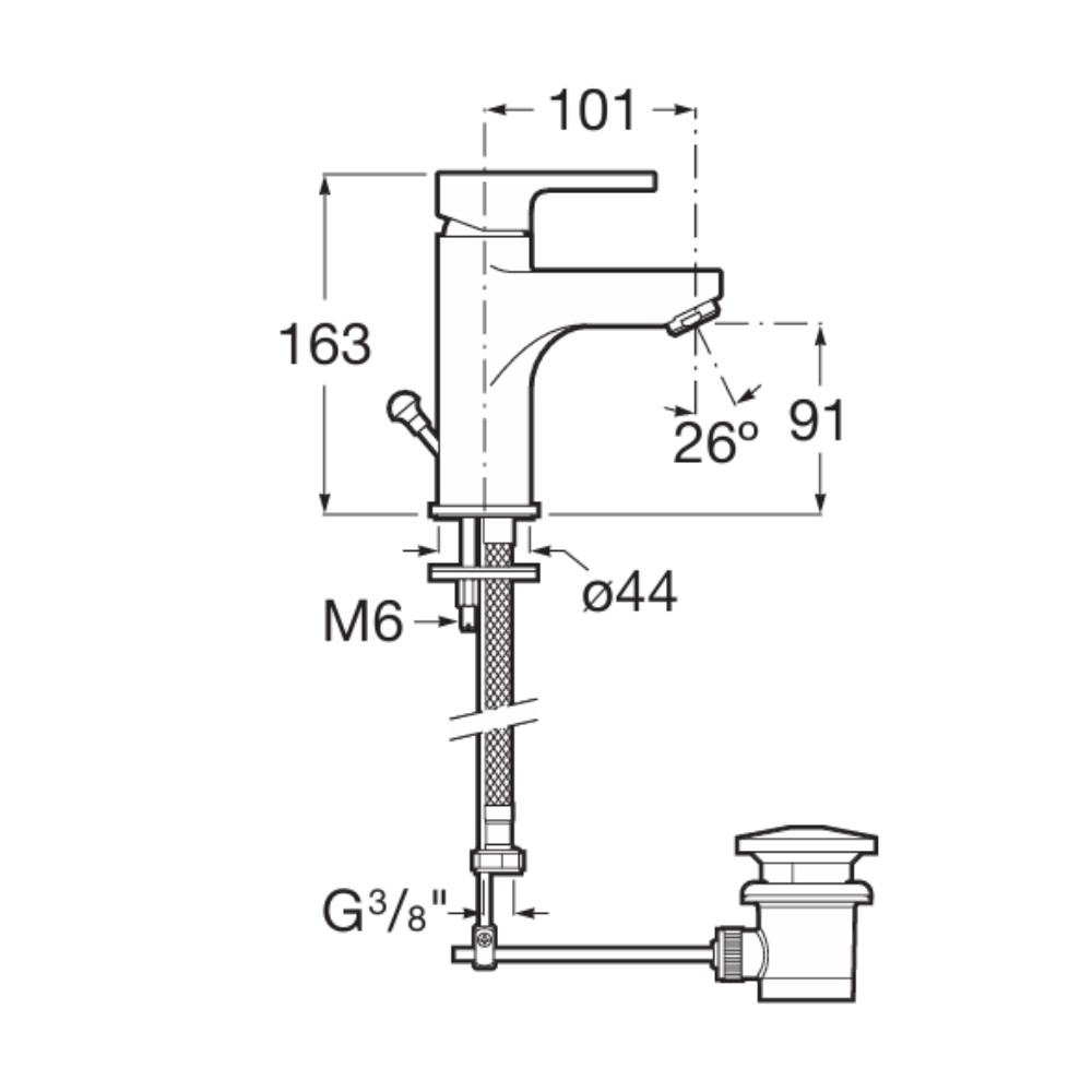Caractéristiques du mitigeur de lavabo à levier avec bonde, Roca Arola, chrome brillant (A5A306AC0K) :