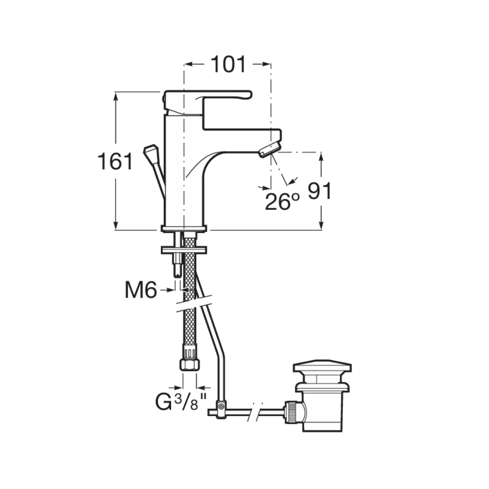 Roca Arola mitigeur de lavabo monotrou à levier, sans vidage, chrome brillant (A5A326AC0K)