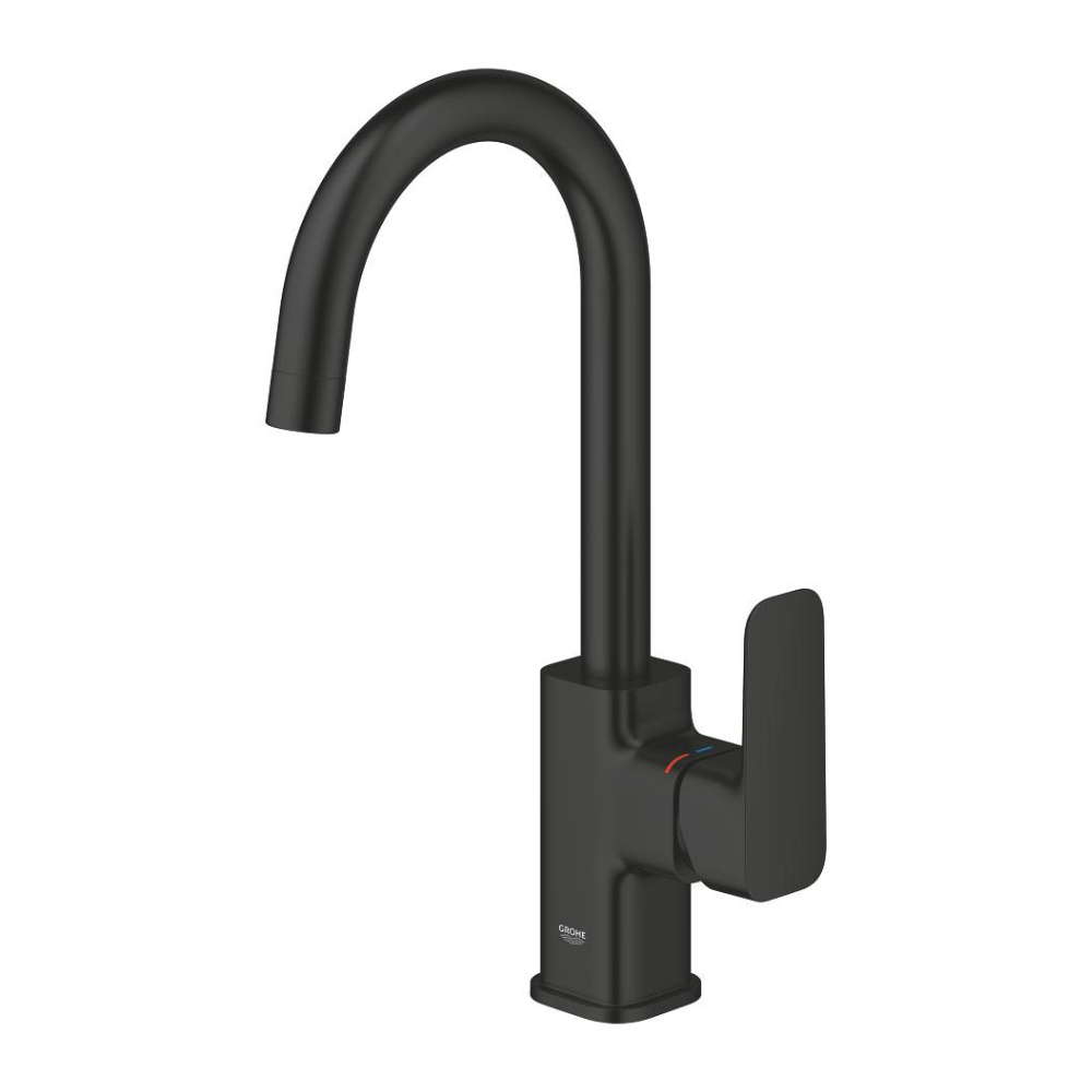 Caractéristiques du mitigeur monocommande de lavabo 1/2" à levier tactile, taille L, Grohe Dice, noir mat (1018712430) :
