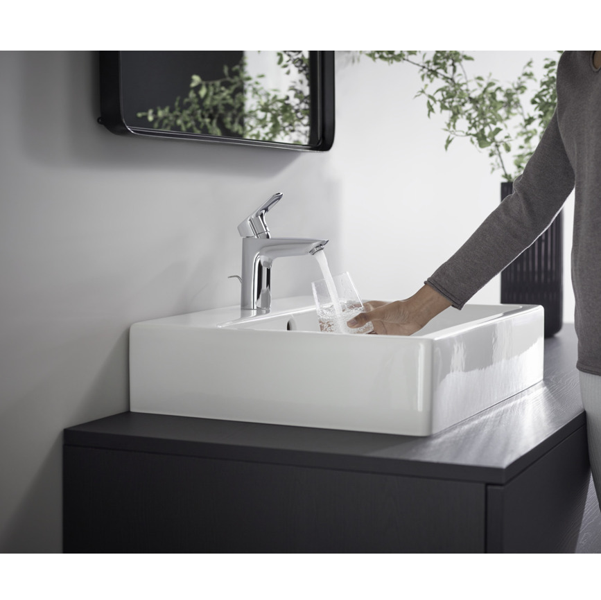 Laissez-vous séduire par la simplicité de ce Mitigeur de lavabo 100, avec tirette et vidage synthétique, Chrome, Hansgrohe Logis (71100000).