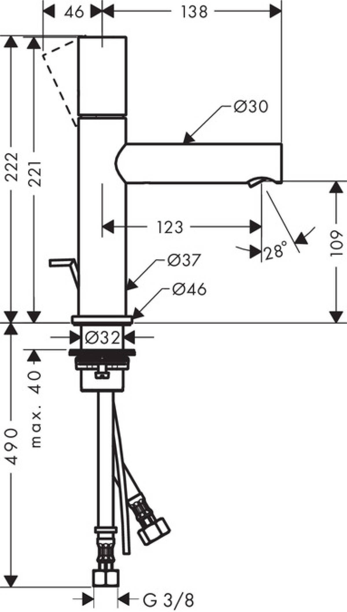 Caractéristiques du Mitigeur lavabo110, poignée zéro avec tirette et vidage (45001000) :