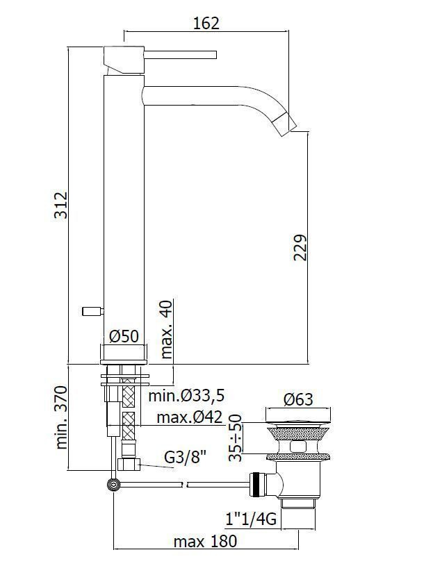 - hauteur du mitigeur 312 mm