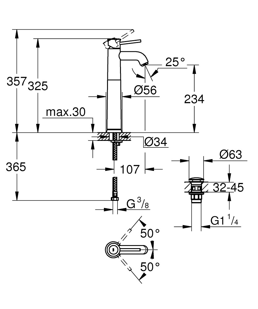 Grohe Start Classic mitigeur monocommande lavabo taille XL (23784000)